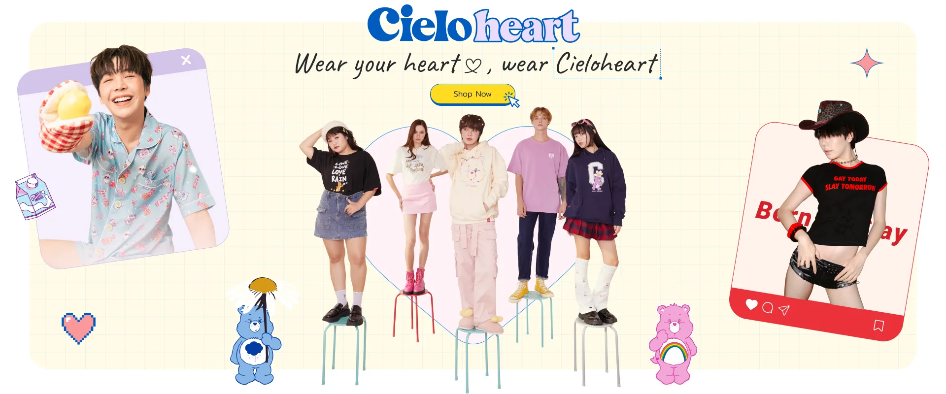 Cieloheart คือแบรนด์เสื้อผ้าที่เกิดจากความตั้งใจอยากให้ทุกวันธรรมดา มีความพิเศษขึ้นอีกนิด เราสร้างสรรค์สินค้าเป็นคอลเลคชั่น ที่เต็มไปด้วยดีไซน์น่ารัก สีสัน และรายละเอียดเล็ก ๆ ที่ทำให้ยิ้มได้ไม่ว่าจะเป็นเสื้อยืด ฮู้ดดี้ ชุดนอน หรือแฟชั่นไอเทม