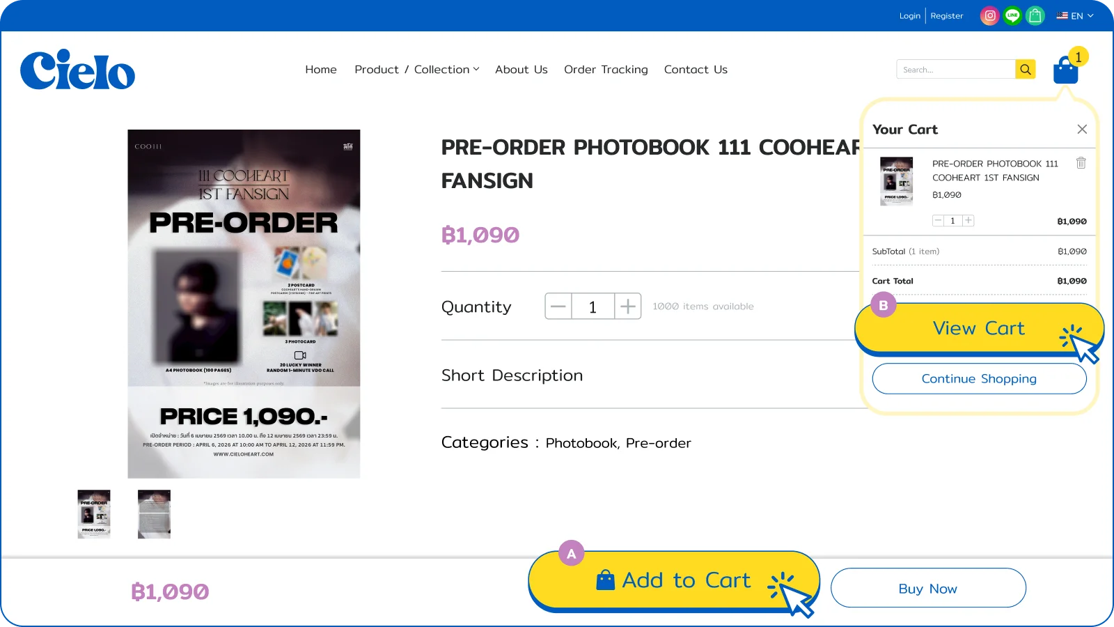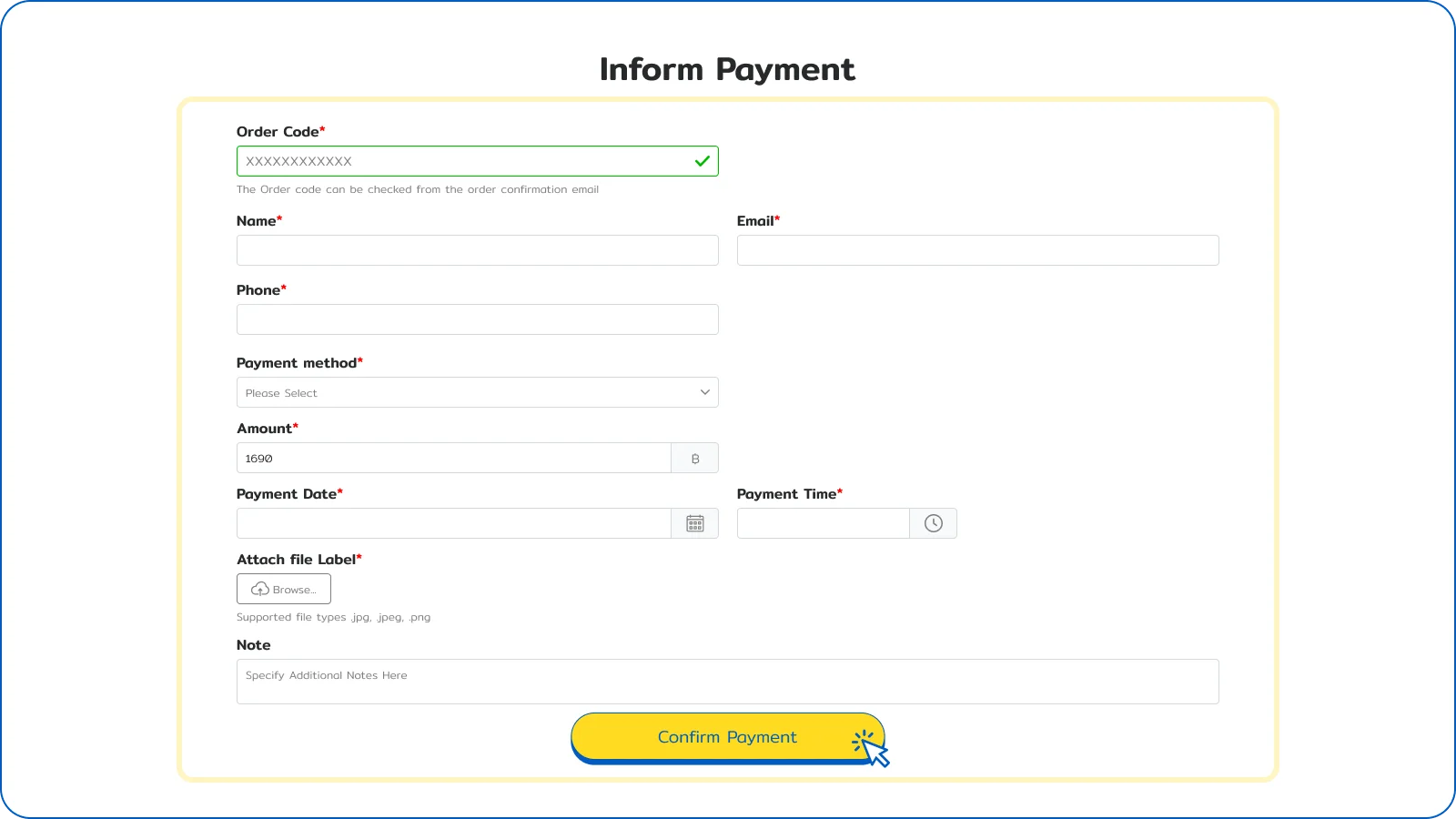 After submitting your payment proof, you can track your order status by using your Order Number and Registered Email under the "Order Tracking" menu.