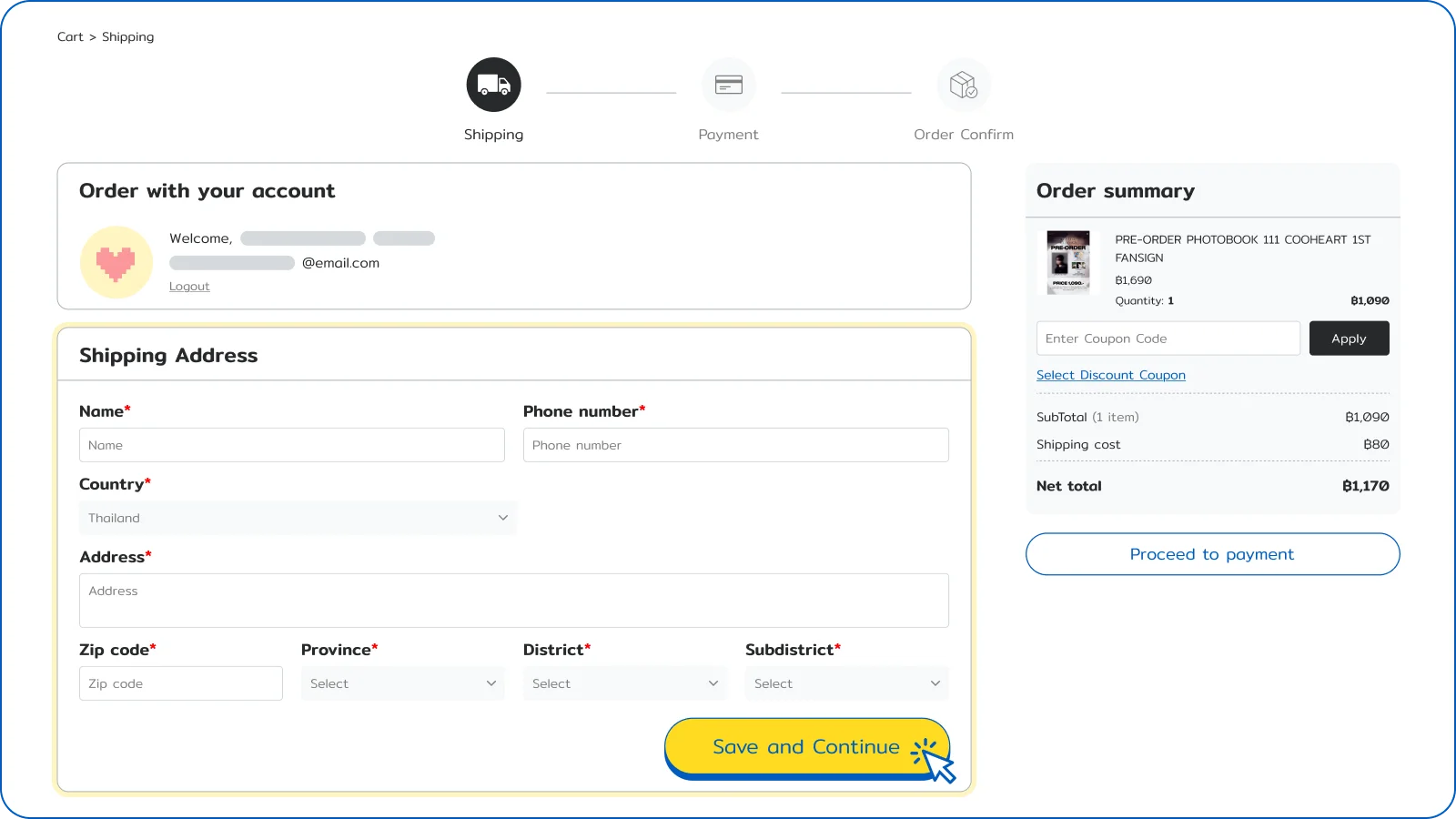 Select a PHOTOBOOK or other products and add them to your cart. Then, review your selected items.